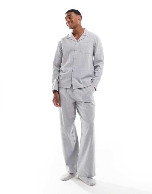 ASOS DESIGN - Set pigiama grigio in flanella spazzolata