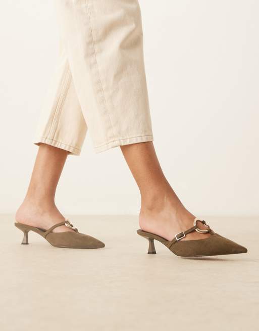 ASOS DESIGN - Shay - Sabot kaki in camoscio sintetico con anello e tacchetti a spillo