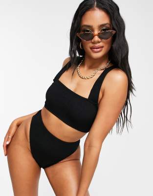 ASOS DESIGN - Slip bikini mix & match vita alta sgambato nero stropicciato