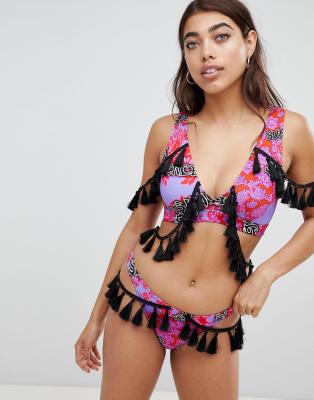 ASOS DESIGN - Slip bikini modello tanga con nappe e stampa vivace