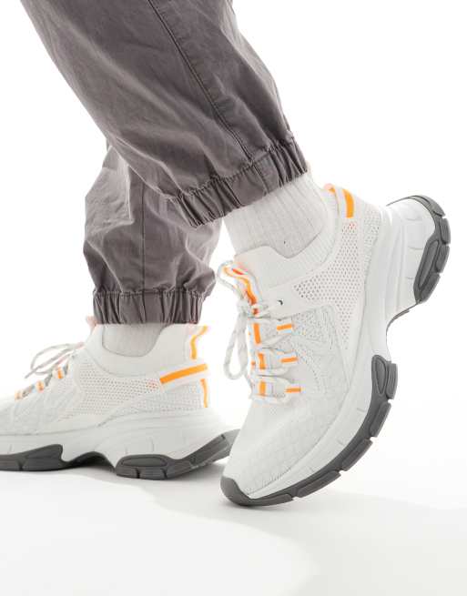 ASOS DESIGN - Sneakers in maglia bianche e arancioni con suola spessa