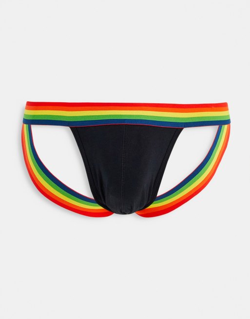 ASOS DESIGN - Sospensorio con fascia in vita arcobaleno