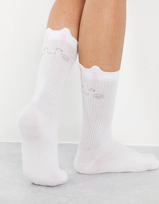 ASOS DESIGN - Spring Festival Bunny - Calzini bianchi a coste