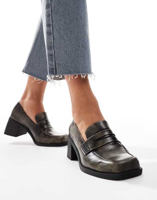 ASOS DESIGN - Stanford - Mocassini nero brunito eleganti con tacco medio
