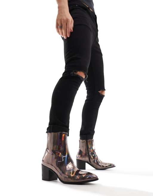 ASOS DESIGN - Stivaletti Chelsea in pelle sintetica iridescente con tacco