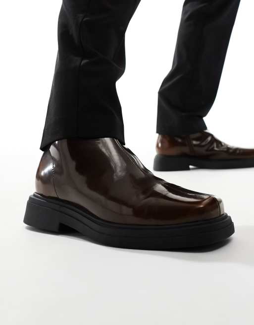 ASOS DESIGN - Stivaletti Chelsea marroni con punta squadrata