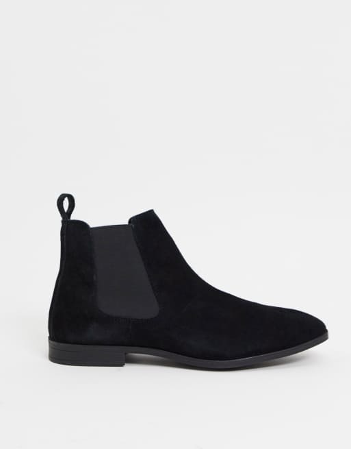 ASOS DESIGN - Stivaletti Chelsea neri in camoscio con suola nera