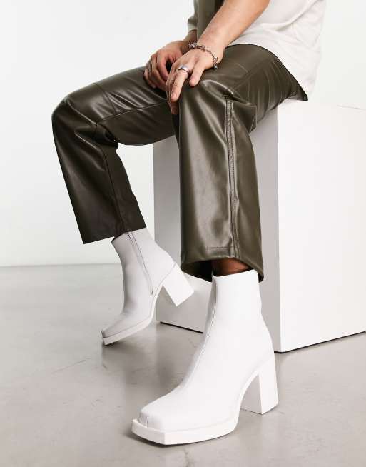 ASOS DESIGN - Stivaletti con tacco in pelle bianca con suola bianca