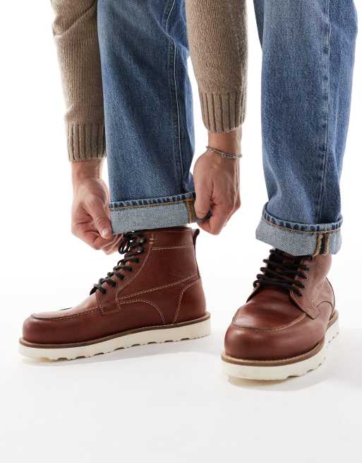 ASOS DESIGN - Stivaletti stringati in pelle marrone con suola a contrasto