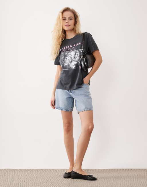 ASOS DESIGN - T-shirt a maniche corte antracite slavato con grafica Portorico