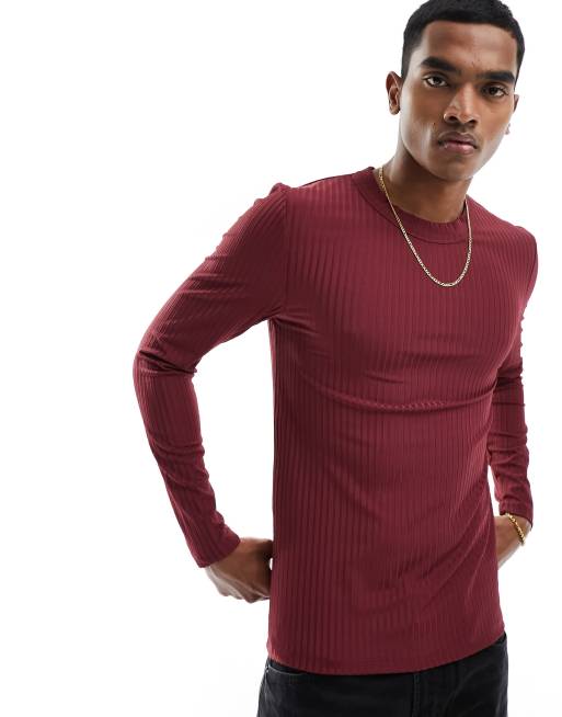 ASOS DESIGN - T-shirt a maniche lunghe aderente bordeaux a coste