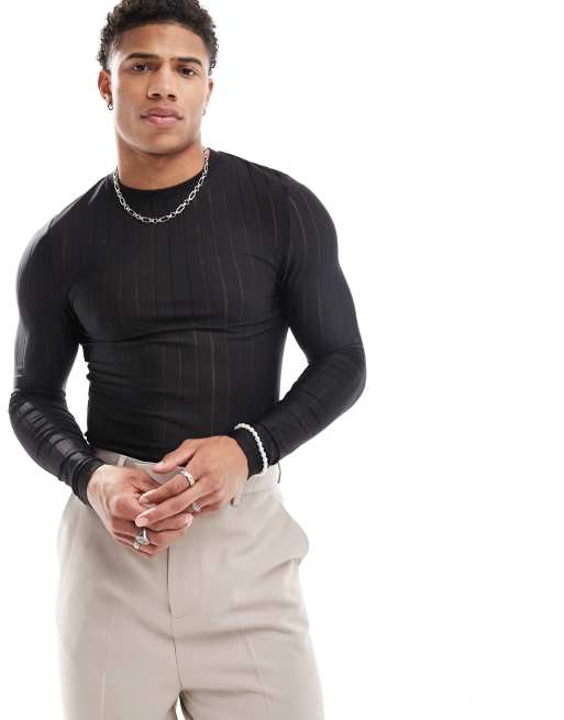 ASOS DESIGN - T-shirt a maniche lunghe attillata in rete a righe