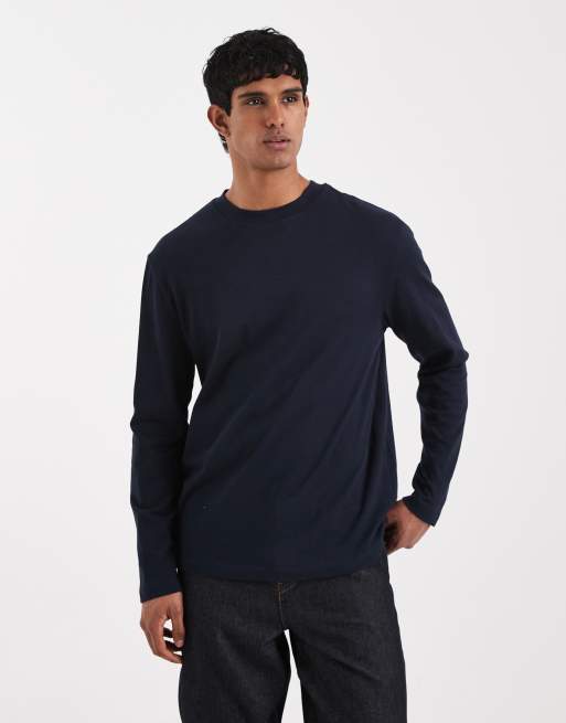 ASOS DESIGN - T-shirt a maniche lunghe comoda pesante blu navy