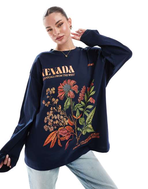 ASOS DESIGN - T-shirt a maniche lunghe con grafica botanica "Nevada"