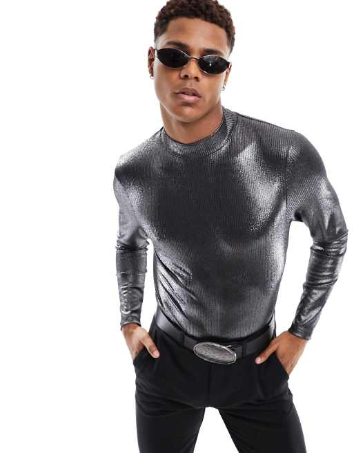 ASOS DESIGN - T-shirt a maniche lunghe dolcevita a coste glitterata