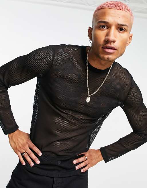 ASOS DESIGN - T-shirt a maniche lunghe e a rete nera