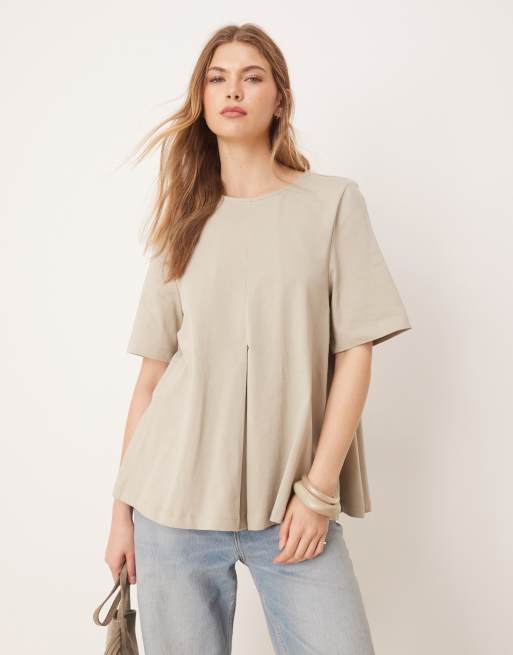 ASOS DESIGN - T-shirt a trapezio kaki chiaro con piega sul davanti