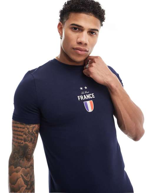 ASOS DESIGN - T-shirt attillata blu con stampa “France” sul petto