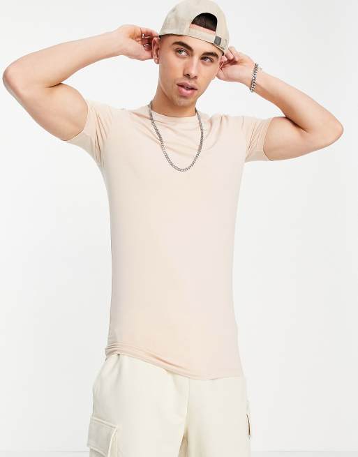 ASOS DESIGN - T-shirt attillata girocollo beige - BEIGE