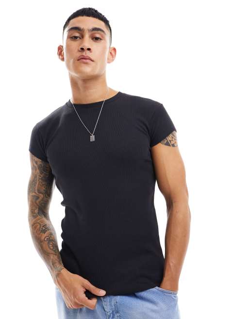 ASOS DESIGN - T-shirt attillata nera con maniche ad aletta