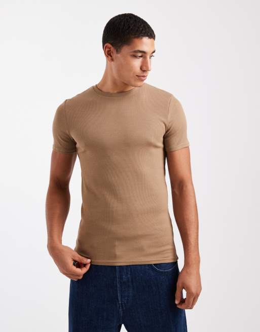 ASOS DESIGN - T-shirt basic attillata marrone a coste