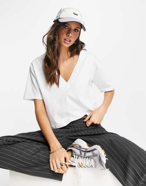 ASOS DESIGN - T-shirt basic bianca con scollo a V