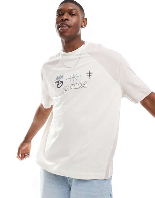 ASOS DESIGN - T-shirt beige oversize cut and sew con stampa sportiva sul davanti