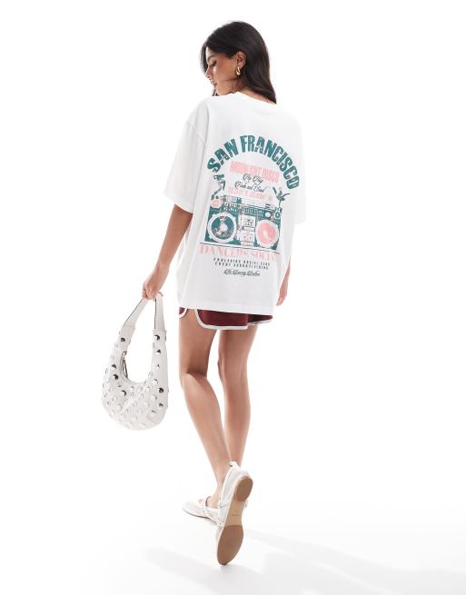ASOS DESIGN - T-shirt boyfriend color crema con grafica "San Francisco Dance Music"