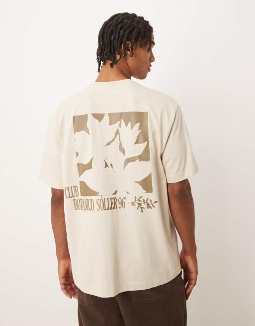 ASOS DESIGN - T-shirt comoda bianco sporco con stampa a fiori sul retro