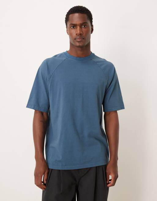 ASOS DESIGN - T-shirt comoda pesante blu slavato con maniche raglan