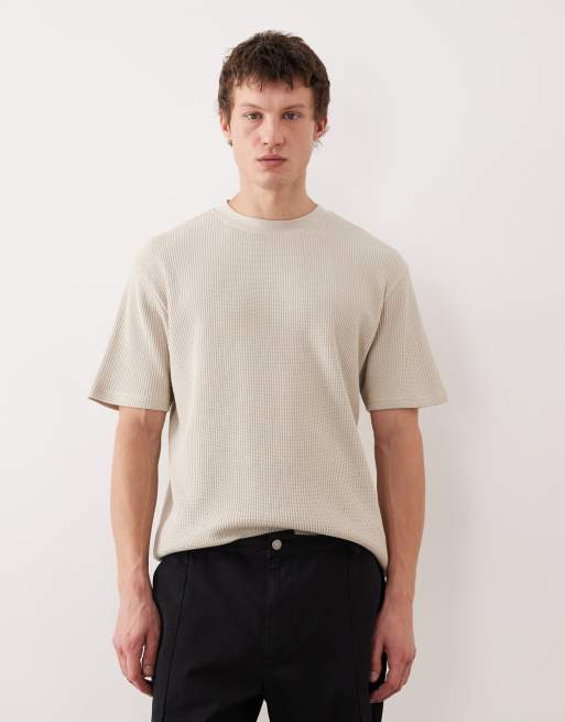 ASOS DESIGN - T-shirt comoda pesante color crema a nido d'ape
