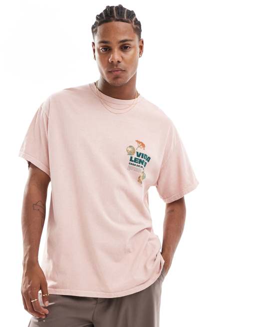 ASOS DESIGN - T-shirt comoda rosa slavato con stampa di frutta sul petto e sul retro