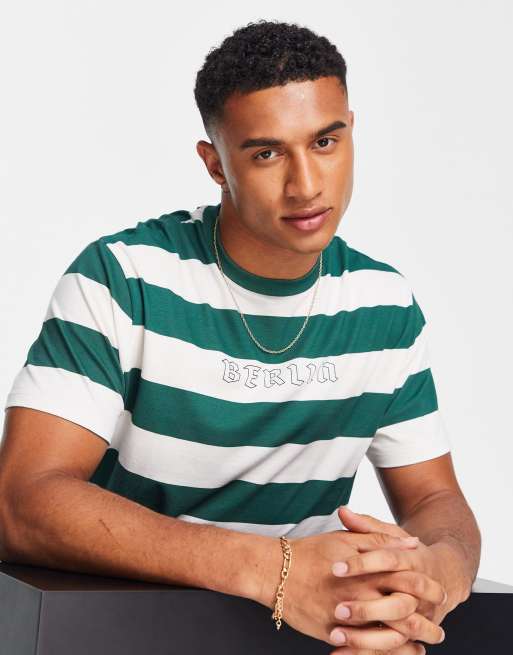 ASOS DESIGN - T-shirt comoda verde a righe con stampa "Berlin" sul petto