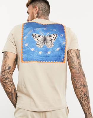 ASOS DESIGN - T-shirt con farfalla grande applicata sul retro e ricamo beige