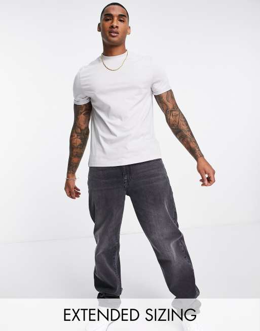 ASOS DESIGN - T-shirt con maniche con risvolto grigio viola