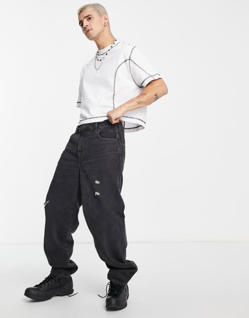 ASOS DESIGN - T-shirt corta oversize bianca con cuciture a contrasto nere