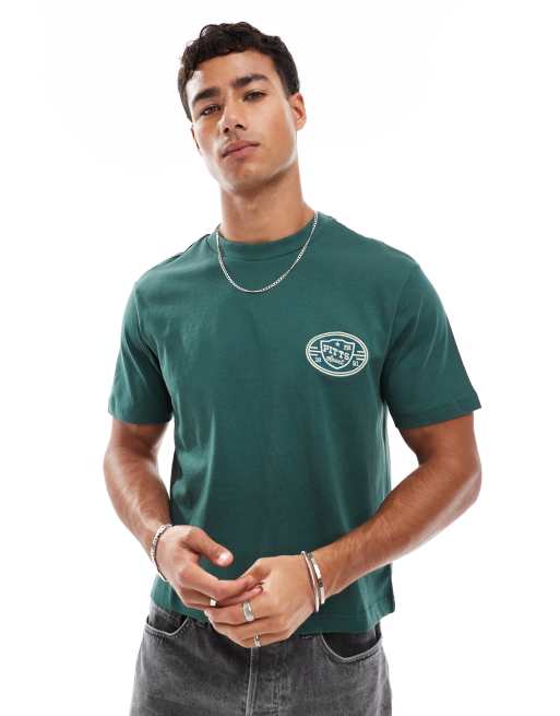 ASOS DESIGN - T-shirt corta verde con ricamo sportivo
