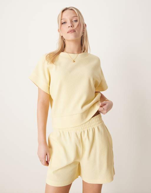 ASOS DESIGN - T-shirt giallo limone a nido d'ape con bordi ampi a coste
