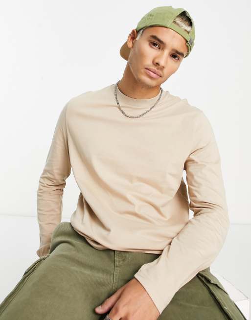 ASOS DESIGN - T-shirt girocollo beige a maniche lunghe
