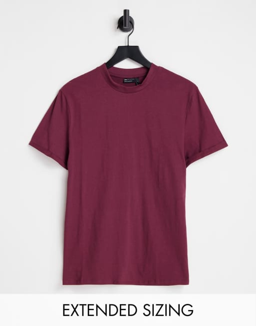 ASOS DESIGN - T-shirt girocollo con maniche con risvolto bordeaux