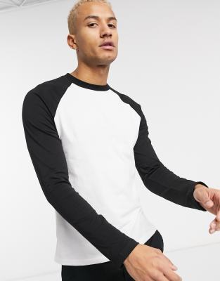 ASOS DESIGN - T-shirt girocollo con maniche lunghe raglan bianca e nera