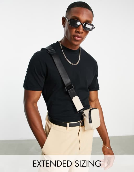 ASOS DESIGN - T-shirt girocollo nera con maniche con risvolto