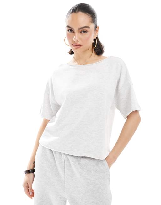 ASOS DESIGN - T-shirt grigio mélange con bordi grezzi e rovescio a ricci