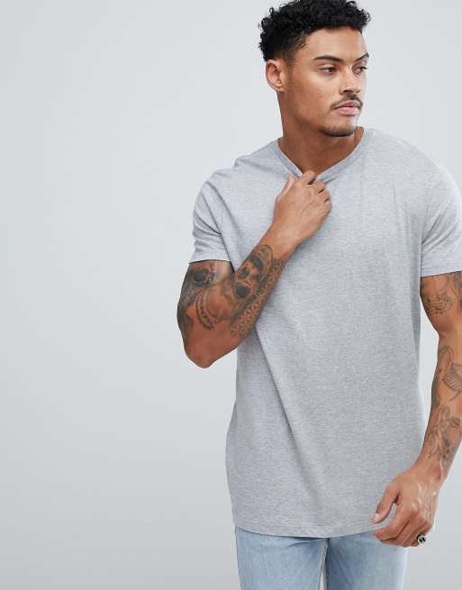 ASOS DESIGN - T-shirt lunga girocollo grigia