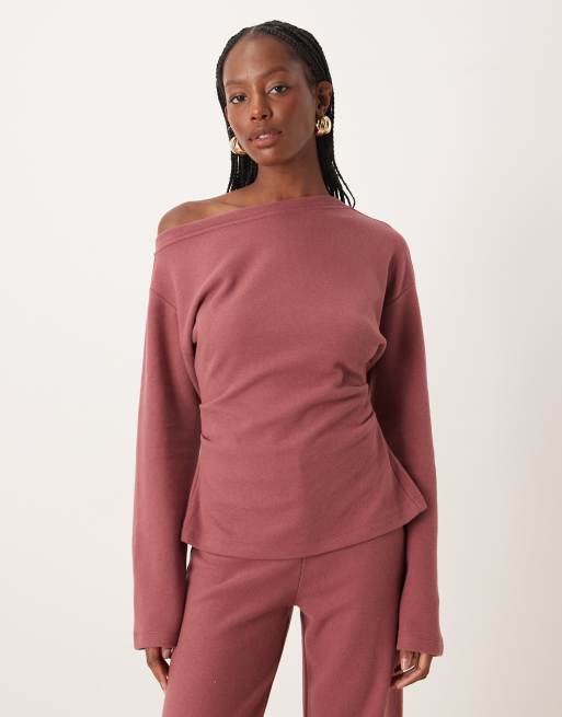 ASOS DESIGN - T-shirt morbidissima rosa scuro con spalle scoperte e vita a corsetto
