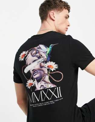ASOS DESIGN - T-shirt nera con stampa con statua sul retro