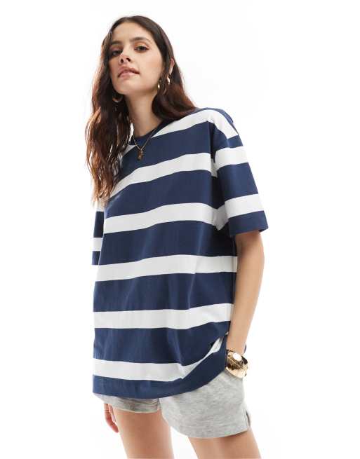 ASOS DESIGN - T-shirt oversize a righe blu navy e bianco