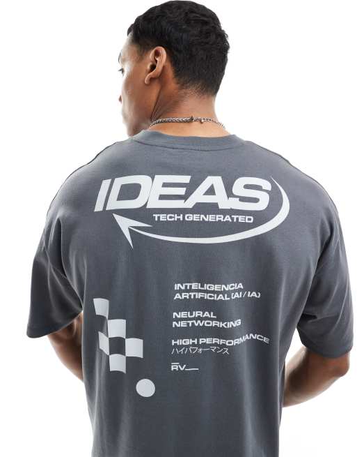 ASOS DESIGN - T-shirt oversize antracite con scritta sul retro