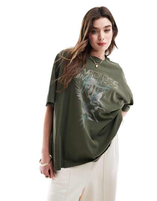 ASOS DESIGN - T-shirt oversize antracite slavato con stampa "Timeless rift"