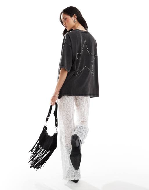 ASOS DESIGN - T-shirt oversize antracite slavato con stella con borchie